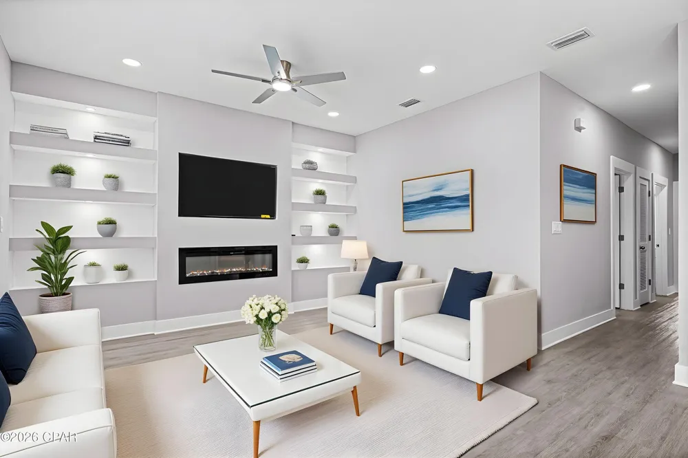 This brand-new, thoughtfully designed home offers modern style, comfort, and convenience in one of Panama City's most accessible locations. Tucked on a quiet street yet just minutes from downtown, dining, shopping, parks, schools, and the waterfront, it delivers everyday ease without sacrificing privacy.Step inside to a custom-built entertainment wall featuring a sleek fireplace and a mounted 55'' TV, creating a striking focal point in the living area. Built-in shelving with color-changing LED lighting lets you set the mood for entertaining or relaxing nights at home.Every detail reflects new construction quality and intentional design, making this home truly move-in ready--perfect as a primary residence, second home, or smart investment. Schedule your showing today.